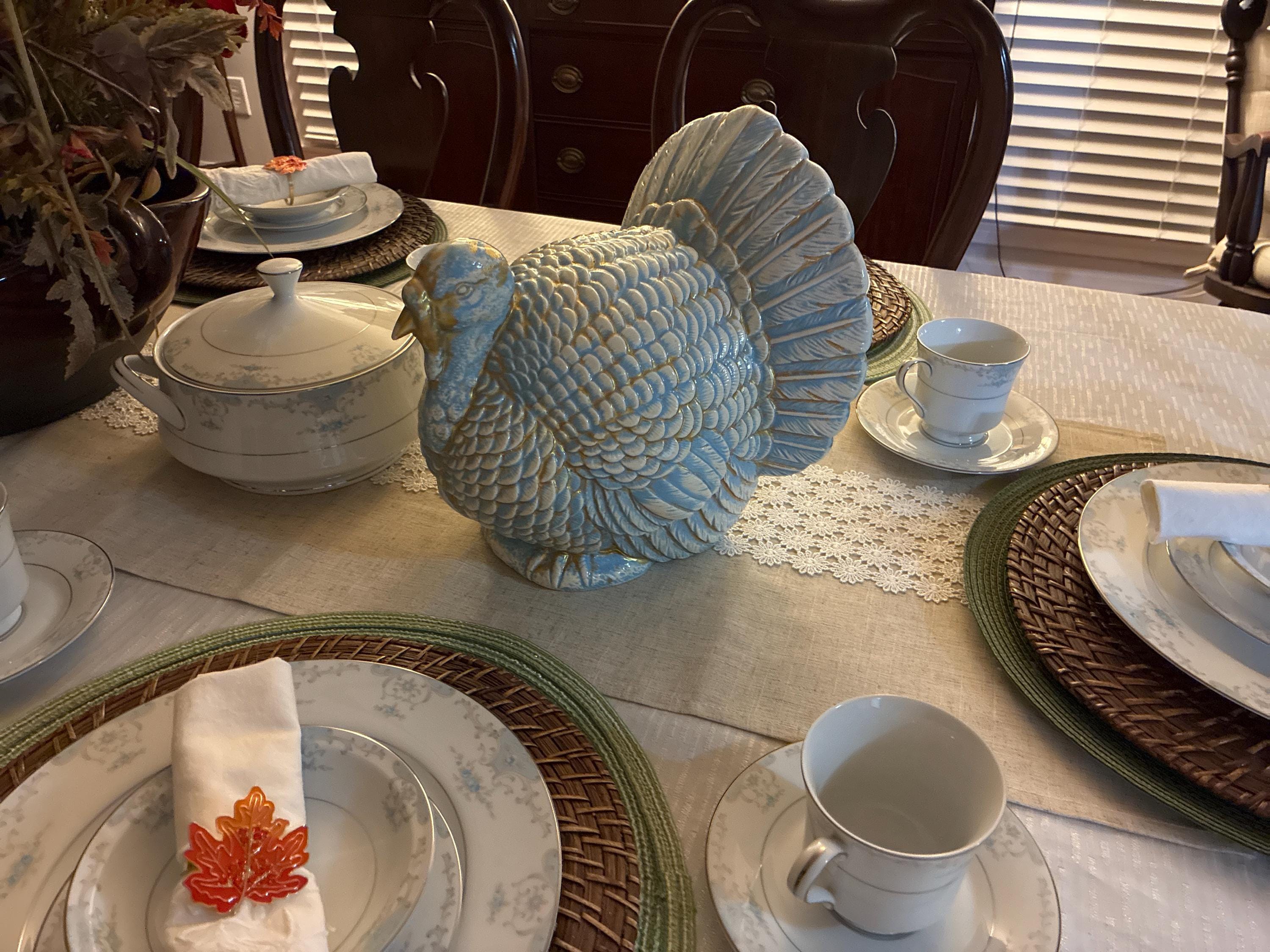 Beautiful turkey! It is just right for her lovely centerpiece. Now she is ready for the holidays and for family and friends to come over.