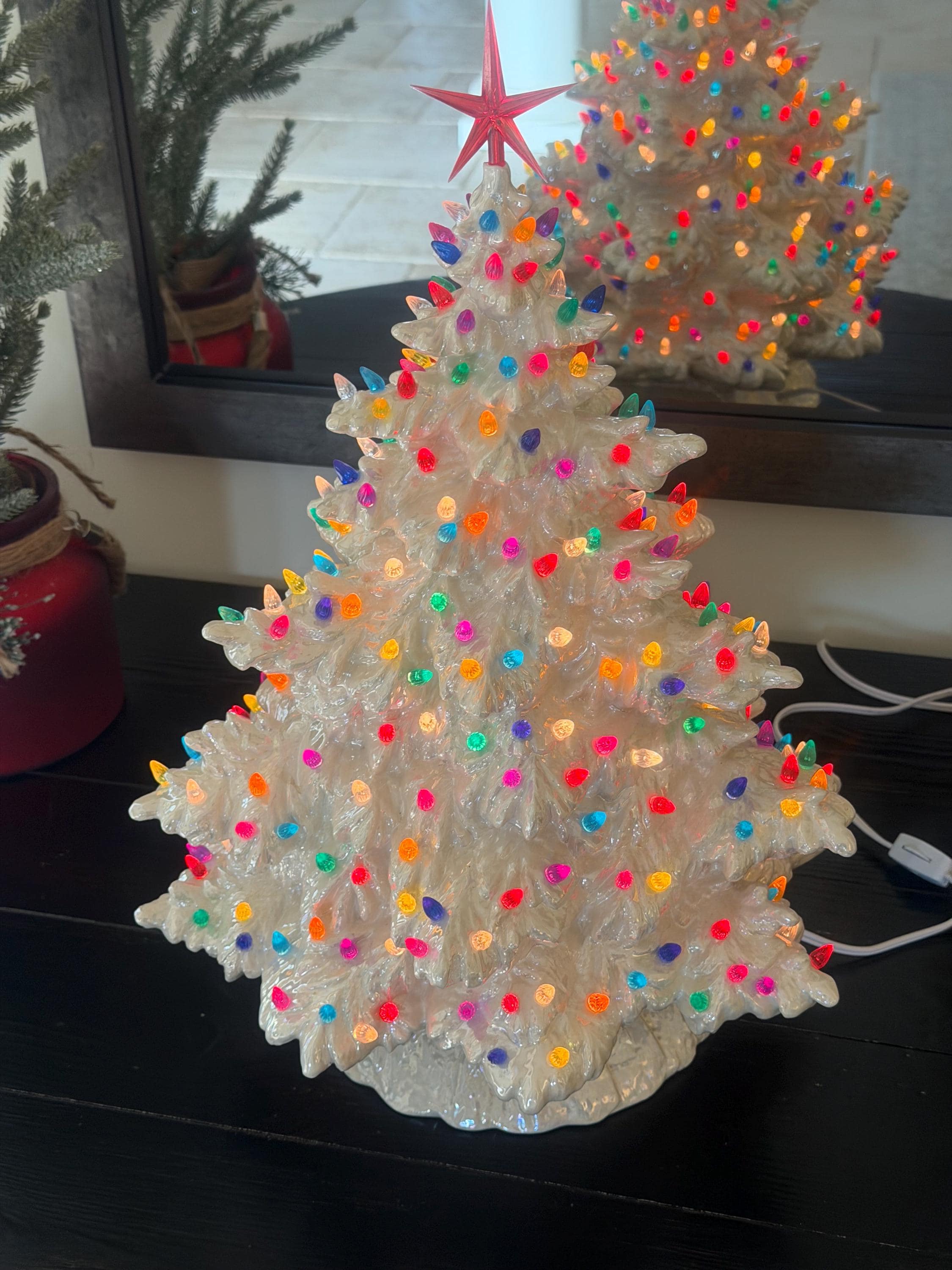 Welcome the holiday season with a touch of exquisite artistry! Handcrafted by the talented artist David Bruce, this 20" x 15" Handmade Glazed Ceramic Christmas Tree is a masterpiece of seasonal beauty. Each piece is meticulously crafted, adding warmth and charm to your festive decor.