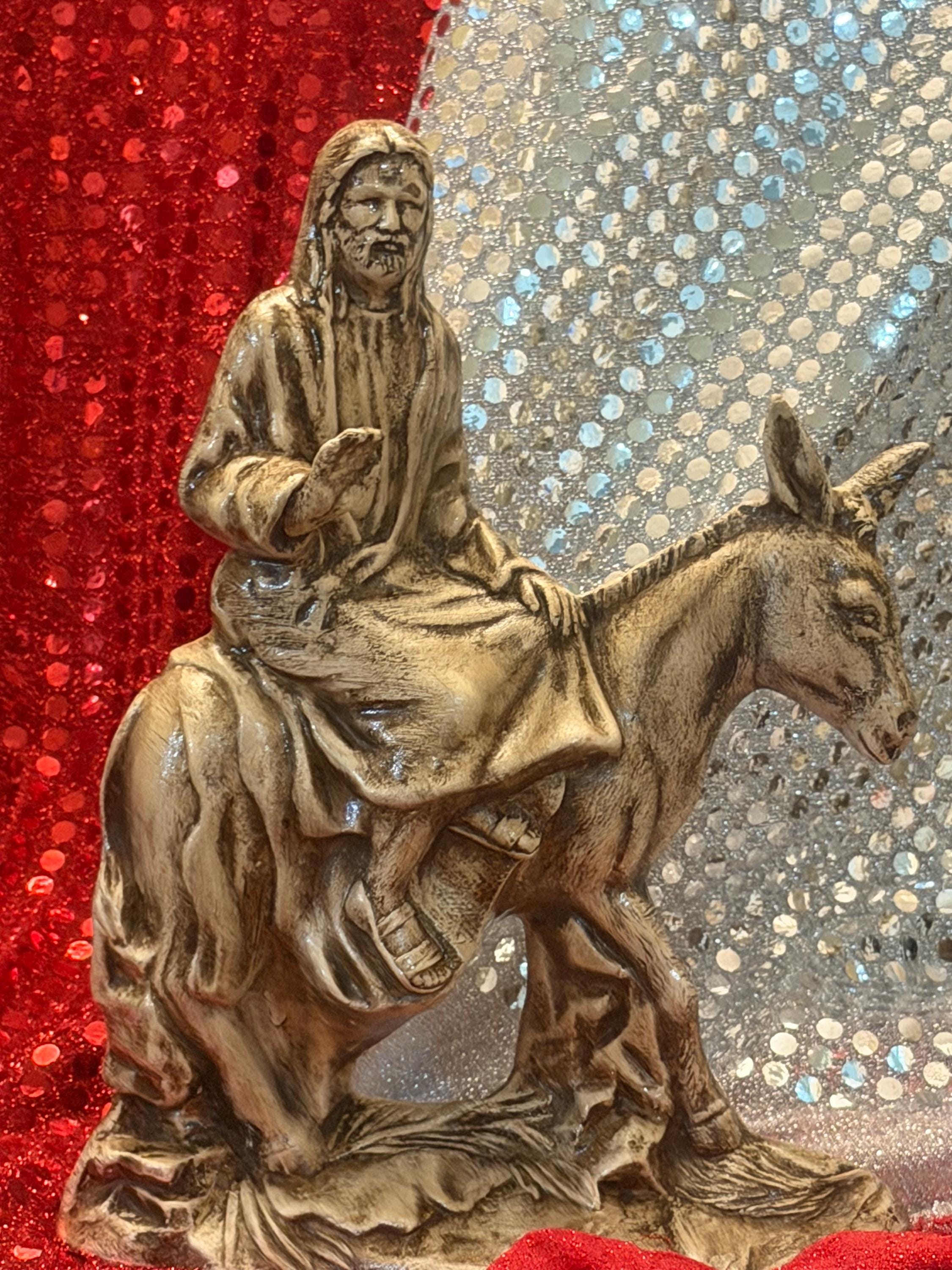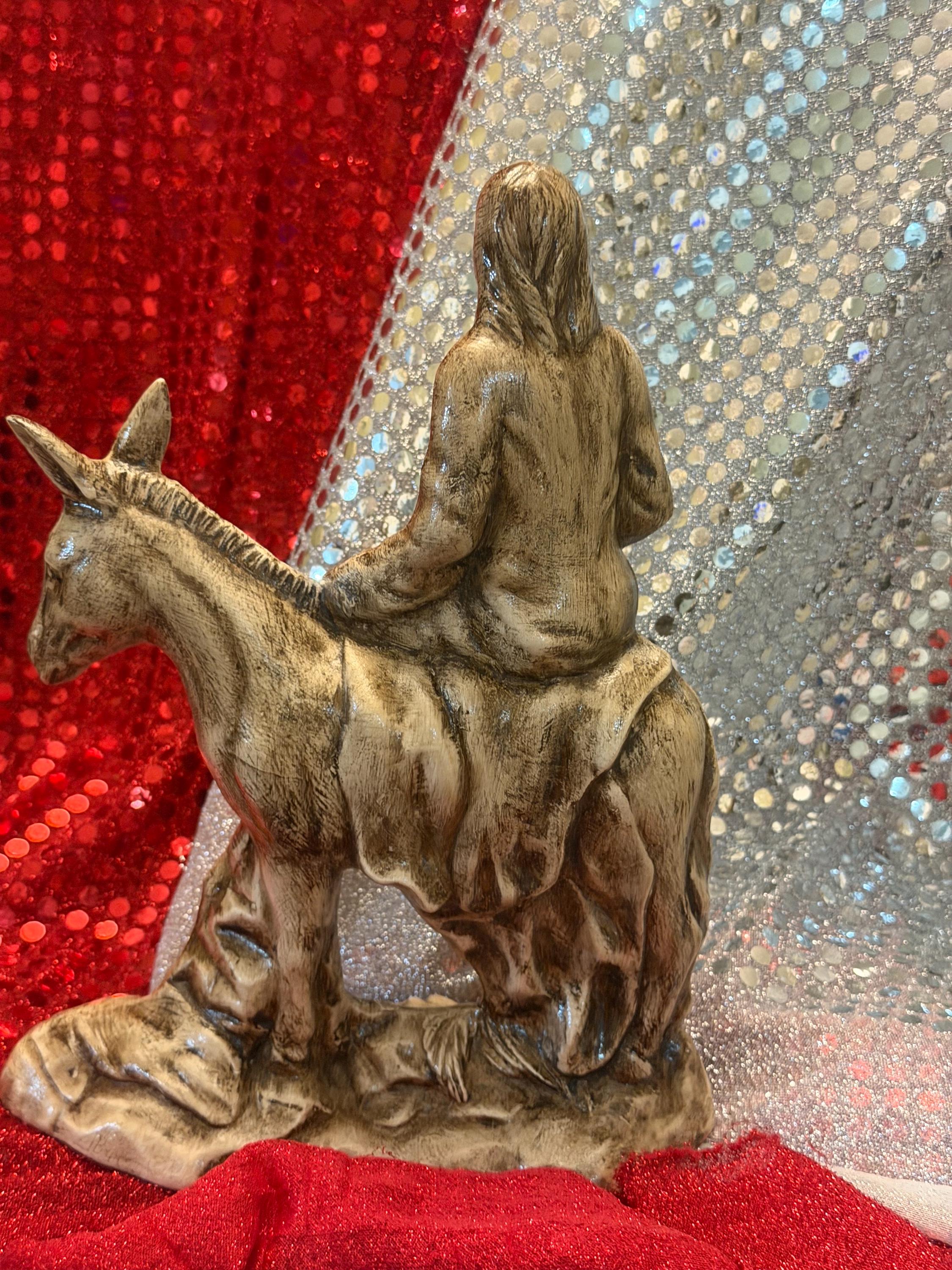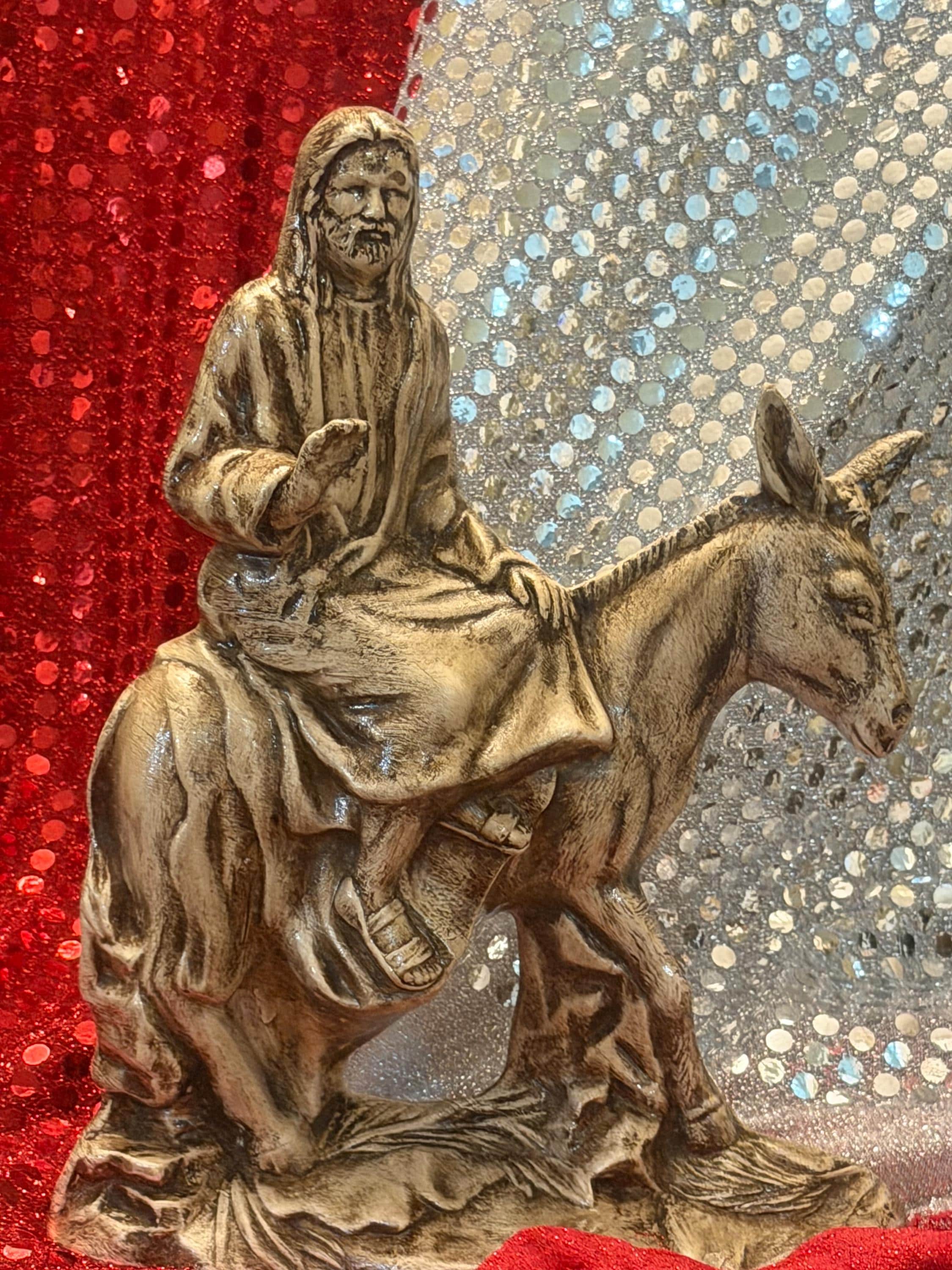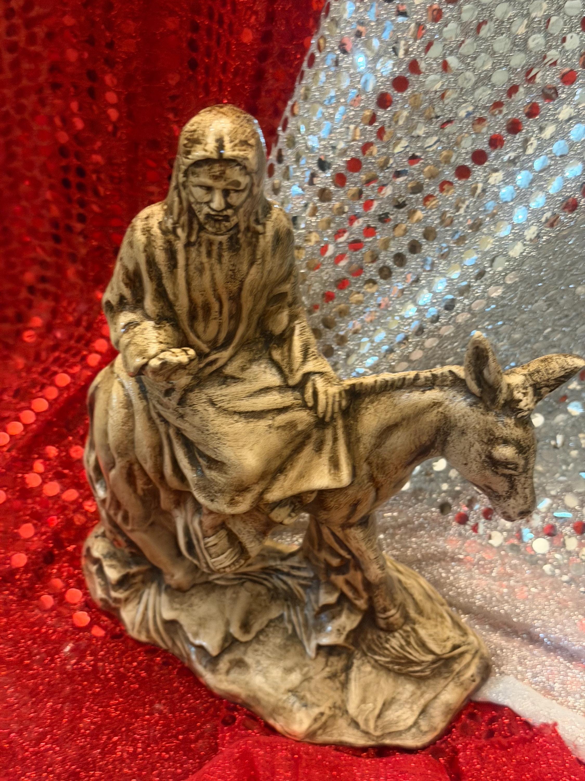 A Palm Sunday statue is hard to find so I was glad to come across this one. I wanted to match the finish on a Last Supper statue I already had, but I have no experience painting so I messaged the seller to see if it was possible for him to customize it for me. He responded right away and was so polite. He gave me a very reasonable quote for the custom paint job so I bought this and 3 others. In just 2 weeks all 4 were done and carefully packed, ready to ship to me. They arrived without a scratch and match my other piece so beautifully. It's an off-white/ivory, with dark accents in the shadows that add great depth and detail. The palm leaves on the ground are quite subtle in the picture of the unpainted version, but with the shading they really pop. David is truly an artist and I could not be happier with his work. Thanks!!
