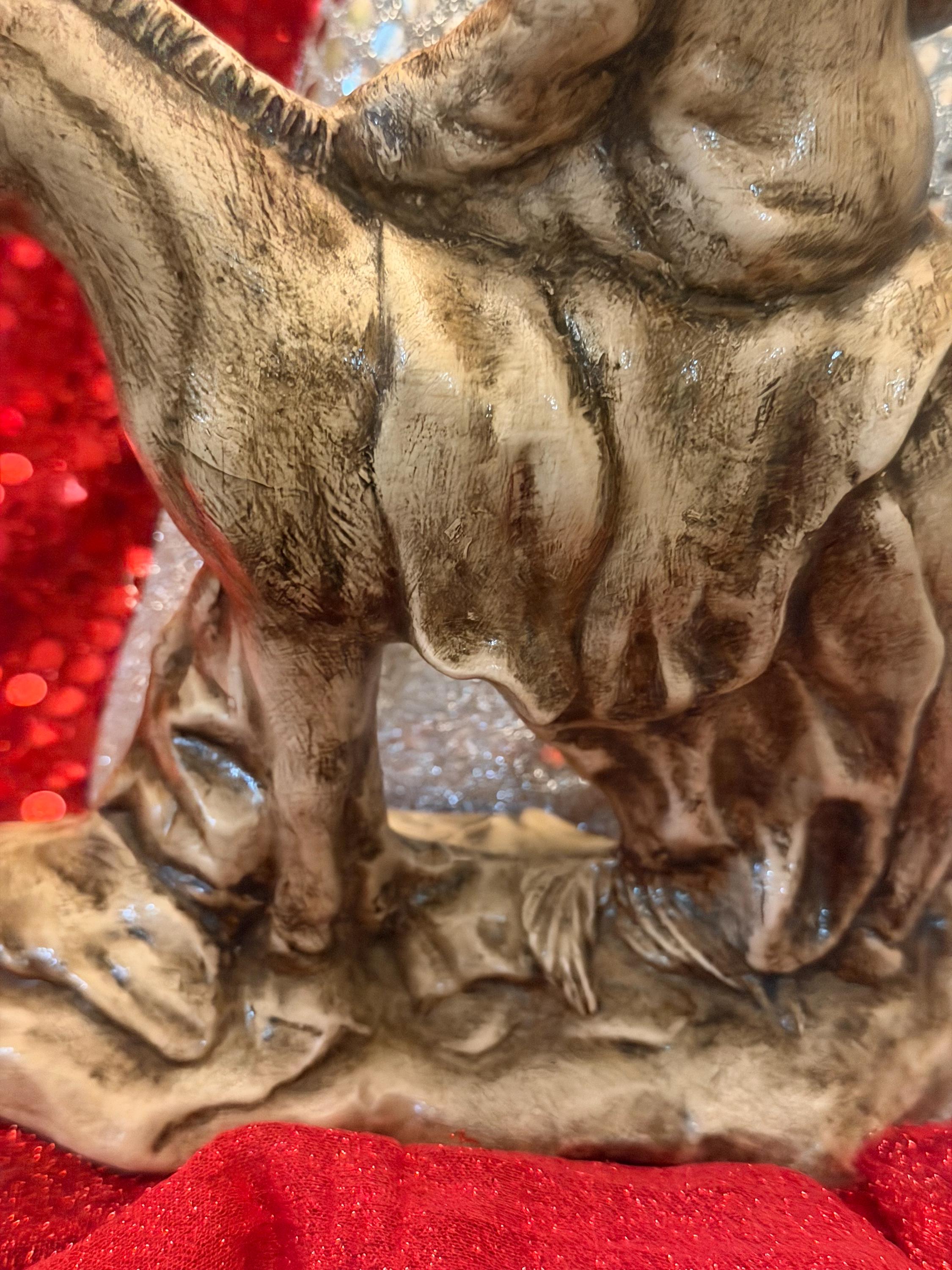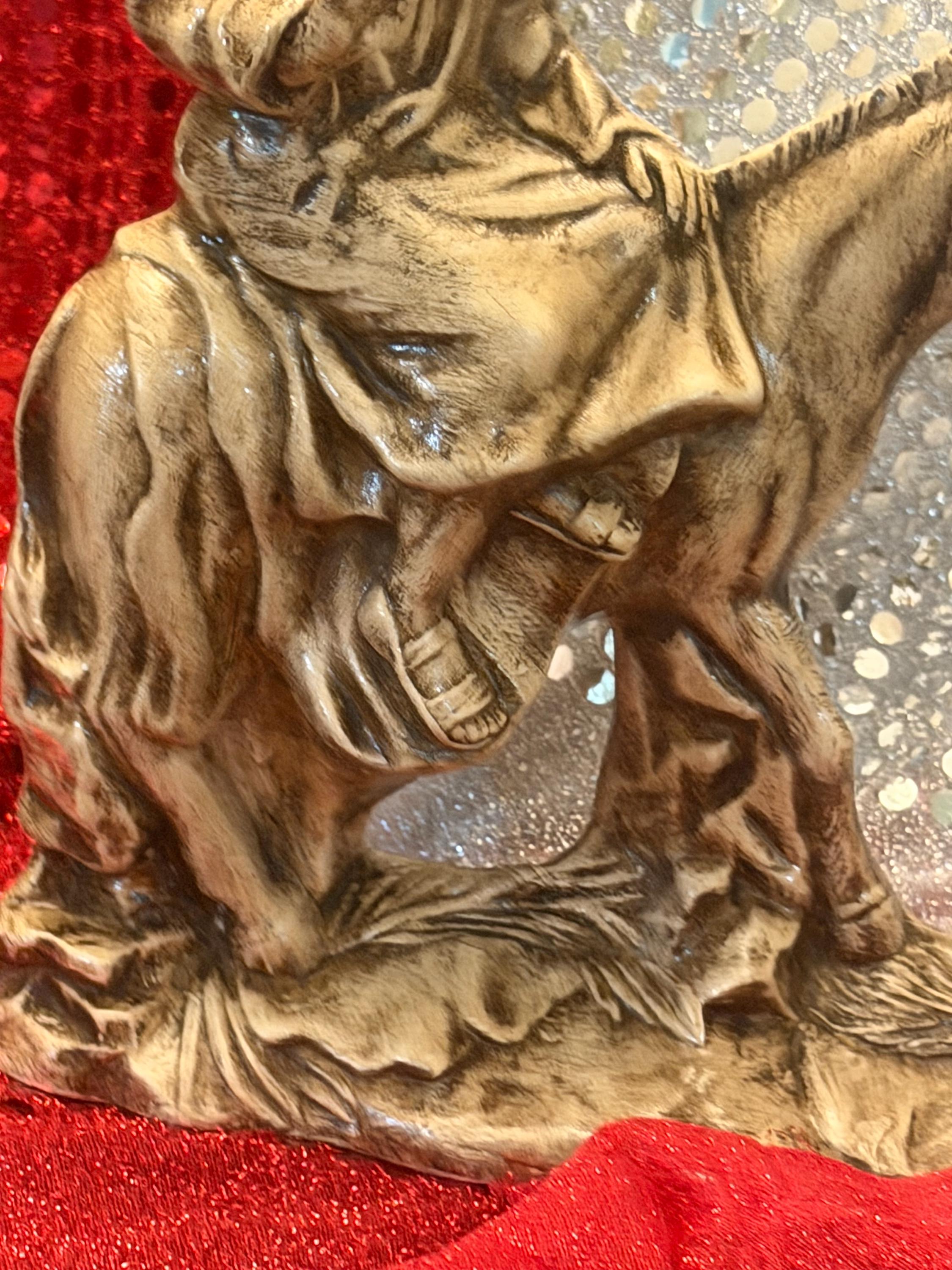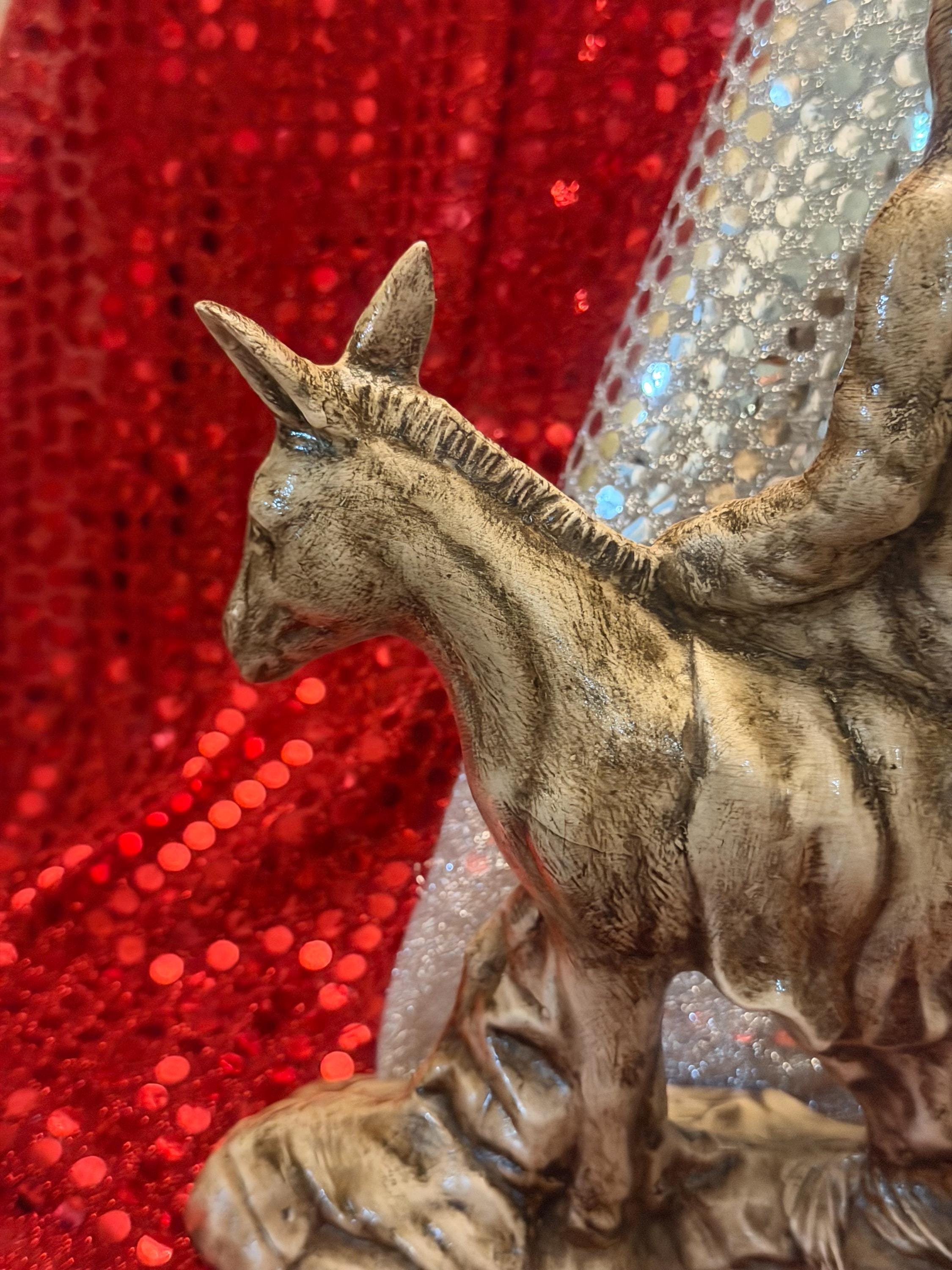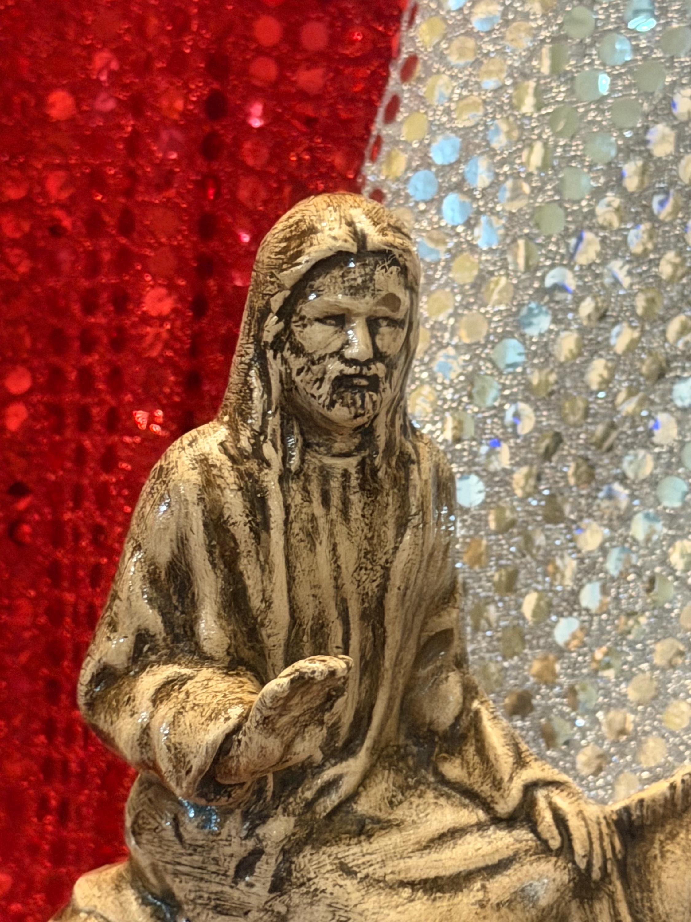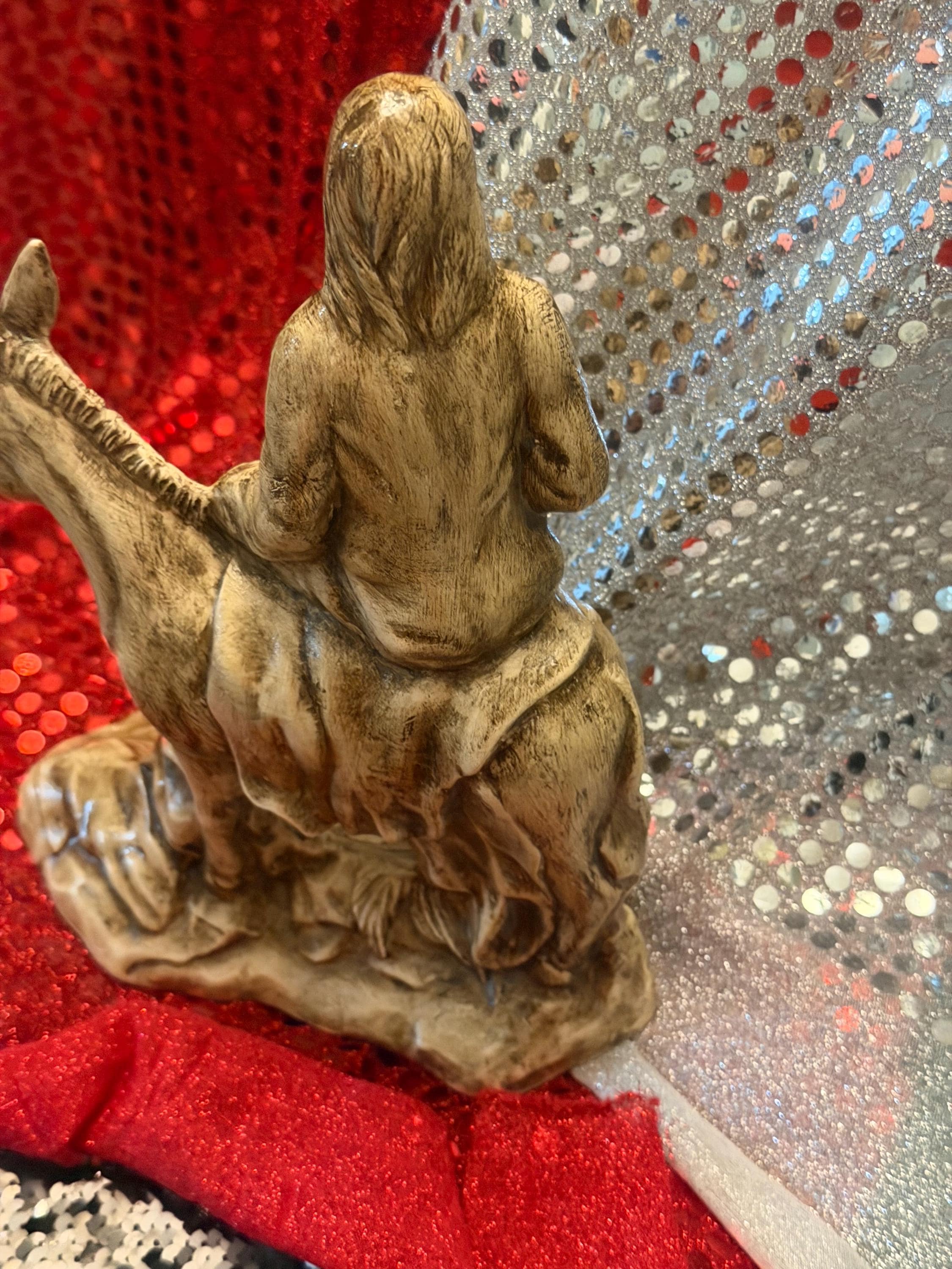 A Palm Sunday statue is hard to find so I was glad to come across this one. I wanted to match the finish on a Last Supper statue I already had, but I have no experience painting so I messaged the seller to see if it was possible for him to customize it for me. He responded right away and was so polite. He gave me a very reasonable quote for the custom paint job so I bought this and 3 others. In just 2 weeks all 4 were done and carefully packed, ready to ship to me. They arrived without a scratch and match my other piece so beautifully. It's an off-white/ivory, with dark accents in the shadows that add great depth and detail. The palm leaves on the ground are quite subtle in the picture of the unpainted version, but with the shading they really pop. David is truly an artist and I could not be happier with his work. Thanks!!